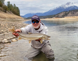 The Kootenay River is one of the best early season bull trout fisheries in North America. In April and May the bull trout congregate at the mouths of the tributary streams entering the Kootenay where they feast on emerging whitefish and kokanee fry. Fishing for big bull trout is very good with catch rates from 2 to 10 a day with most catch in the 23 to 35 inch range.
