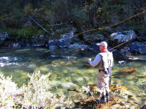 The Skookumchuck is our primary walk and wade stream. It offers the beginner or advanced angler the opportunity to fish a truly pristine piece of water with a good chance of catching Cutthroats that are measured in pounds not inches. This trip calls for a moderate one hour hike down along the River and into the canyon reach where we prefer to fish.